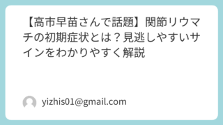 Uncategorized 【高市早苗さんで話題】関節リウマチの初期症状とは?見逃しやすいサインをわかりやすく解説